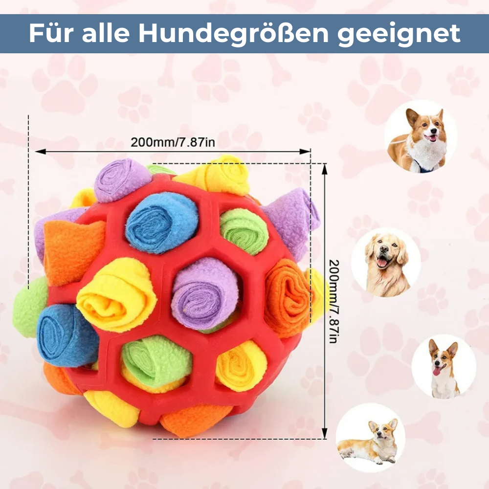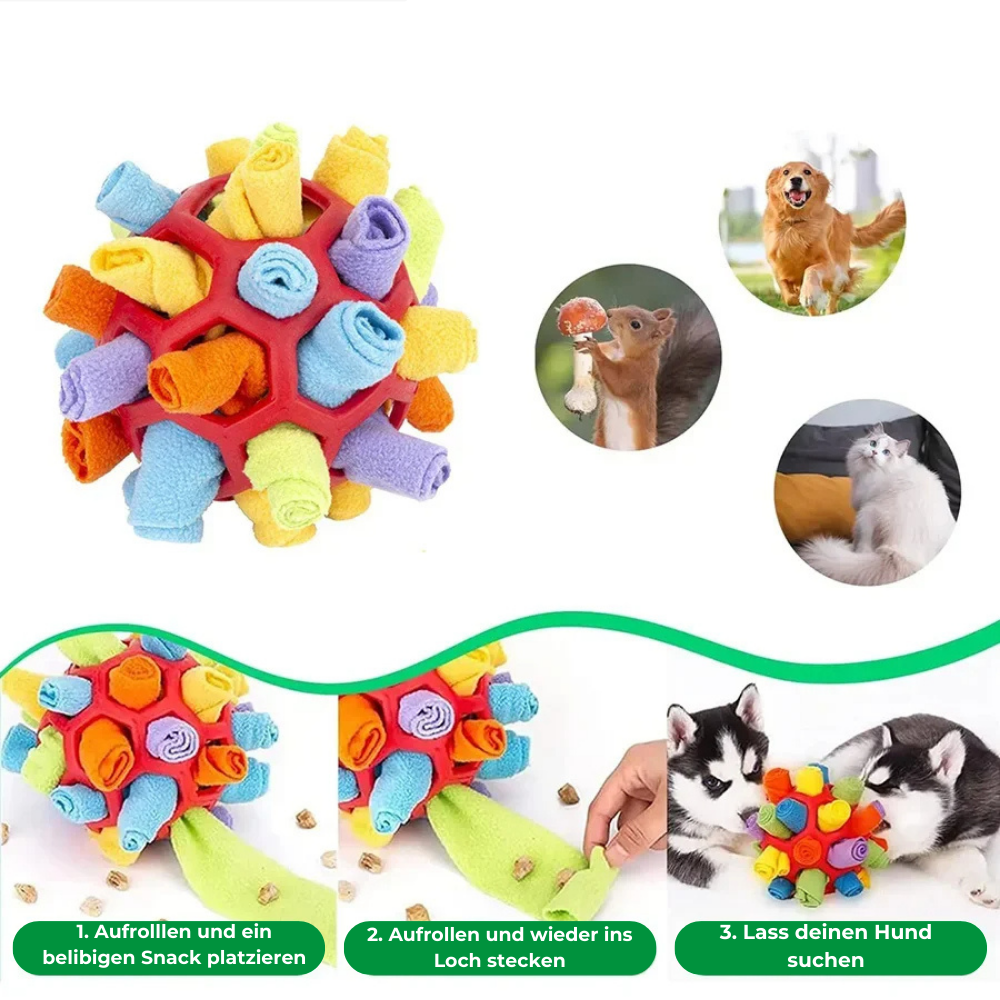 Mit diesem Ball muss dein Hund aktiv nach den versteckten Leckerlis suchen – eine perfekte Möglichkeit, die Schnüffelnase und die Intelligenz deines Hundes zu trainieren.